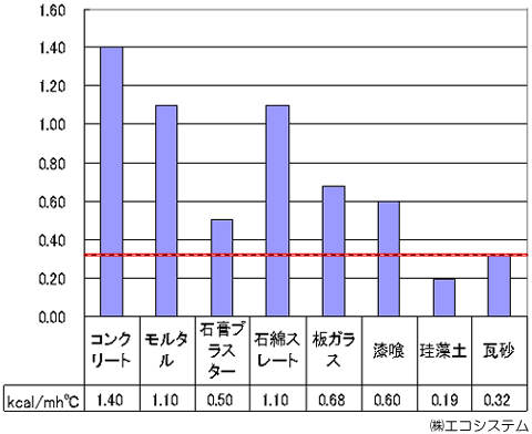Thermal conductivity is approximately 70% lower than mortar, showing Kawarakabe is highly suitable for walling.
